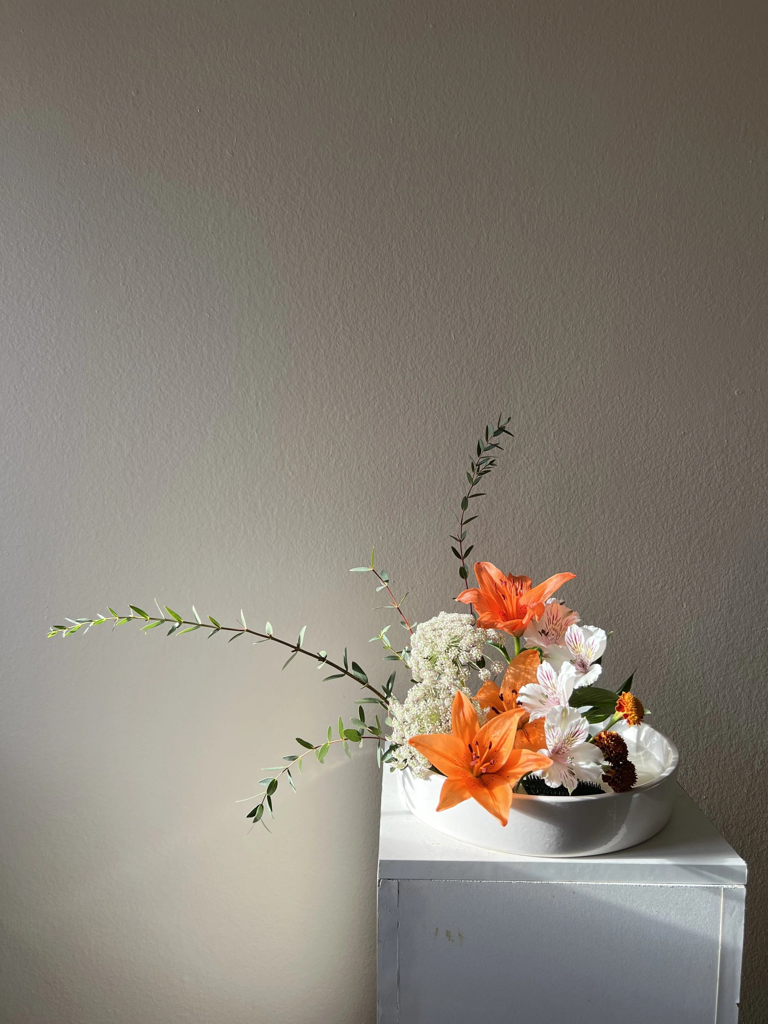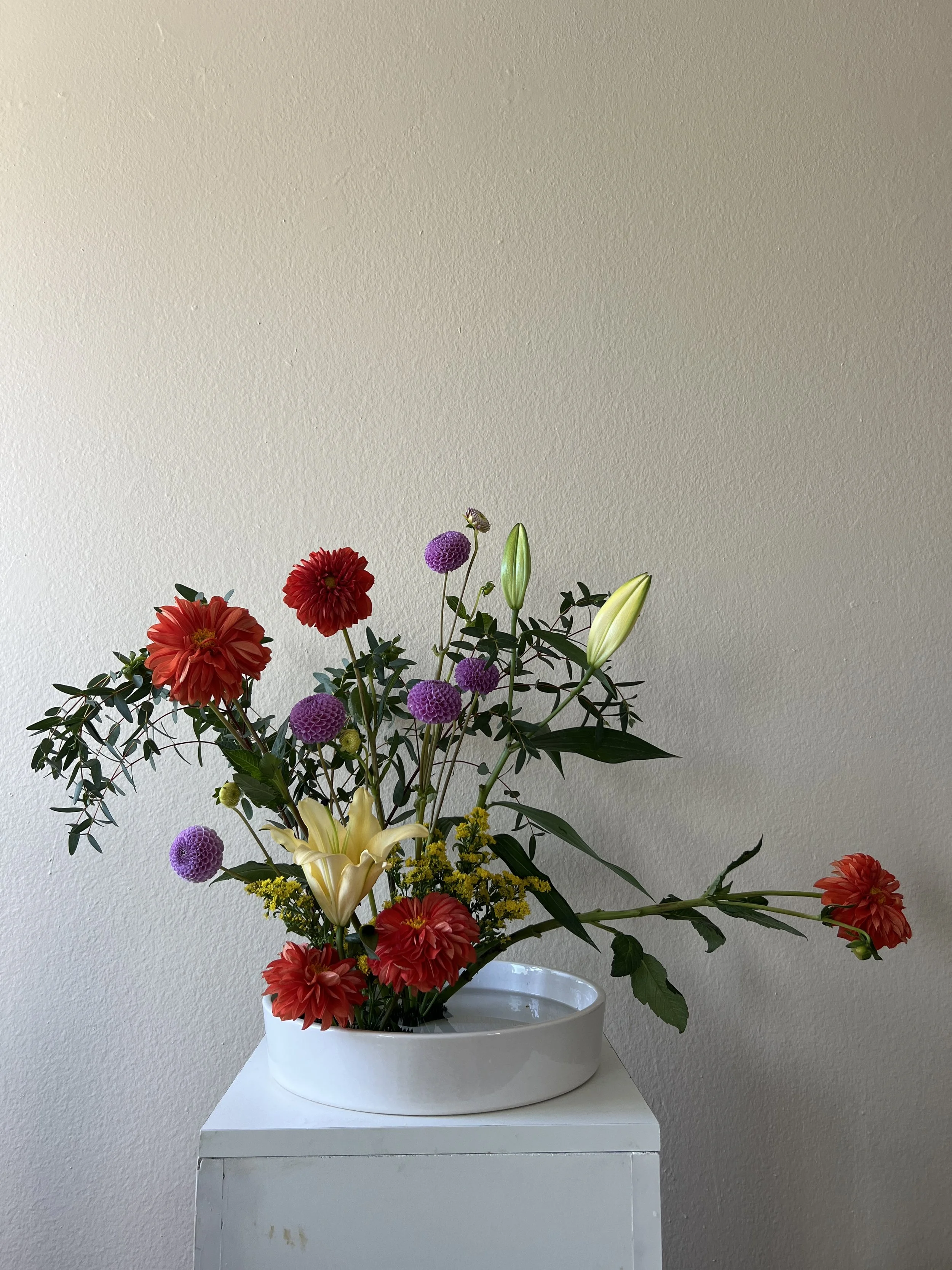 Tiger Blossom classes are typically 1 hour long. Students will be guided through a mindful process of abstract flower arranging. Whether you have experience or it’s your first time, we will walk you through the steps to create a beautiful abstract flower arrangement for your home that is uniquely your own.