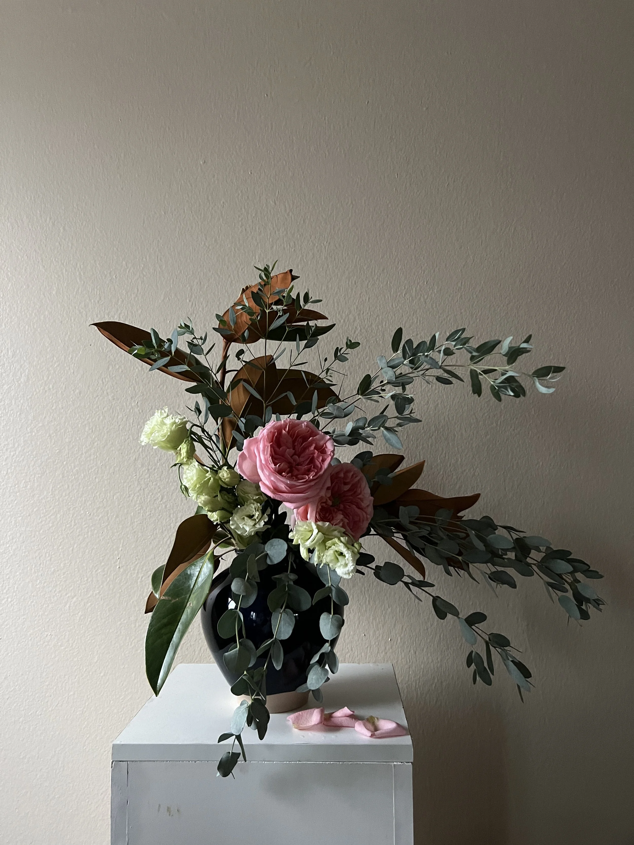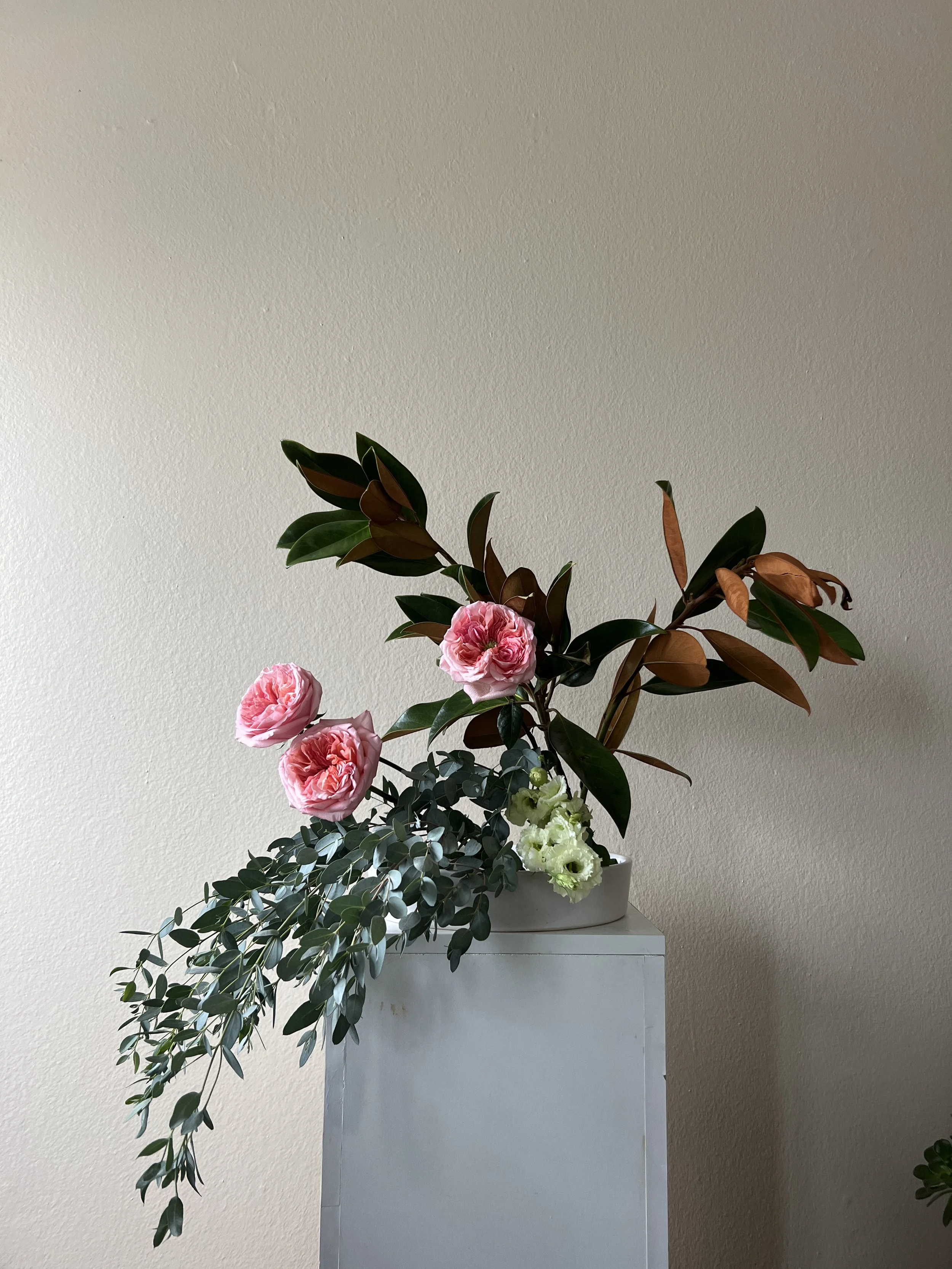 In-home floral designs by Tiger Blossom are available in 3 varieties - a single arrangement for your home to custom installations on shelves & bookcases. Prices start at $150